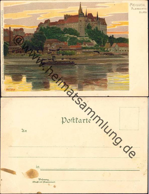 Meissen - Albrechtsburg - Künstlerkarte Paul Hey - Verlag Ottmar Zieher München - auf der Rückseite Farbspuren (E92506y) |