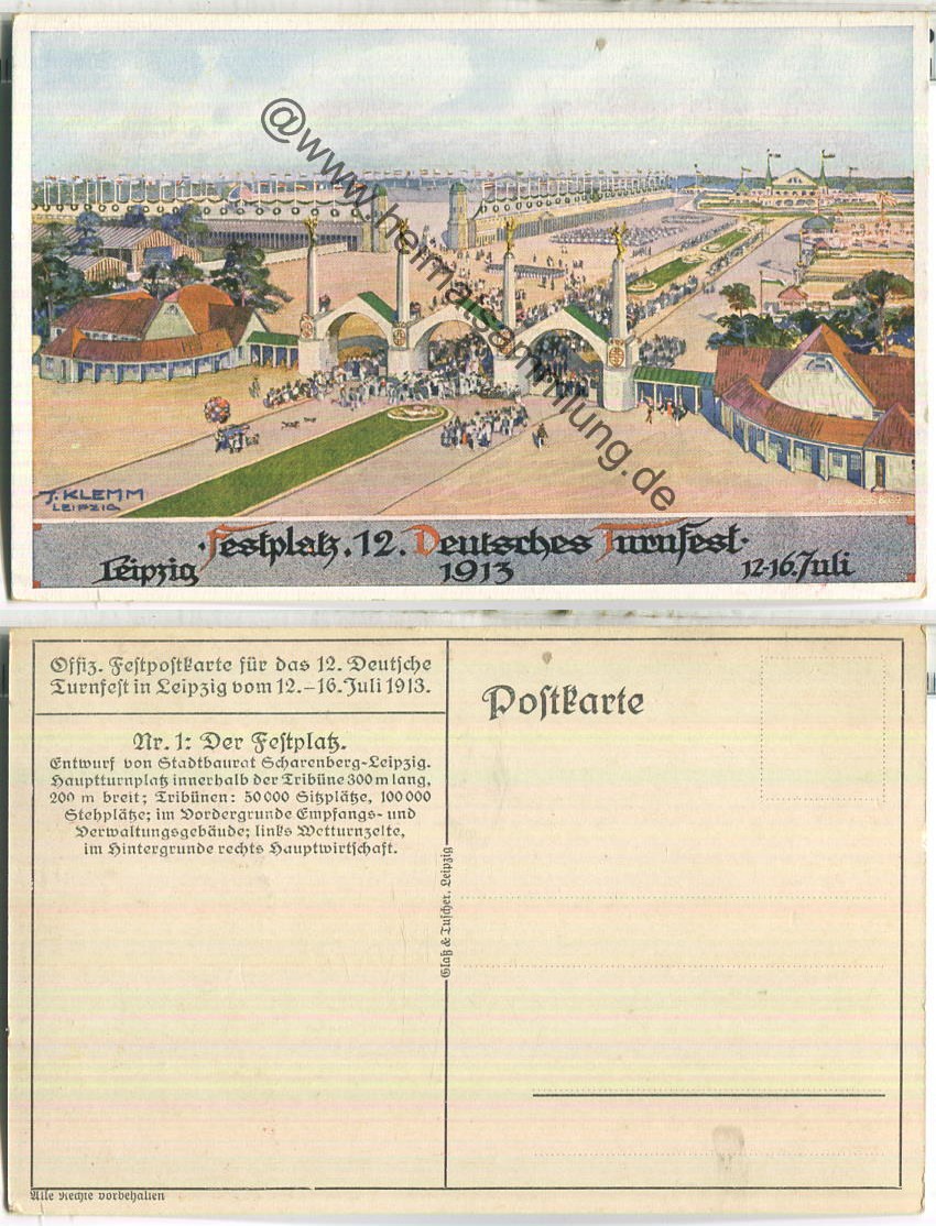 Leipzig - XII Deutsches Turnfest 1913 - Künstlerkarte signiert A. Liebing - Verlag Glass & Tuscher Leipzig (E1623y) |