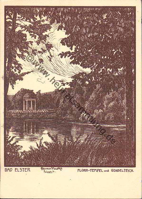 Bad Elster - Flora-Tempel und Gondelteich - Künstlerkarte Hermann Knothe Leipzig (E86211) |