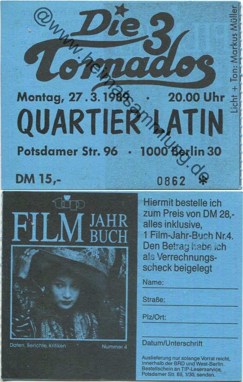 Berlin - Quartier Latin - Die 3 Tornados - Eintrittskarte 1989 (G62734y) |