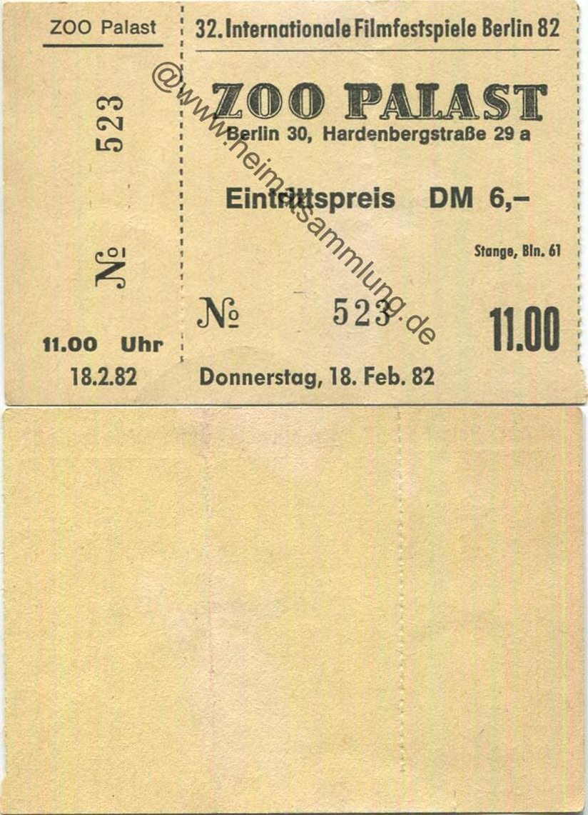 Berlin - 32. Internationale Filmfestspiele Berlin 1982 - Eintrittskarte