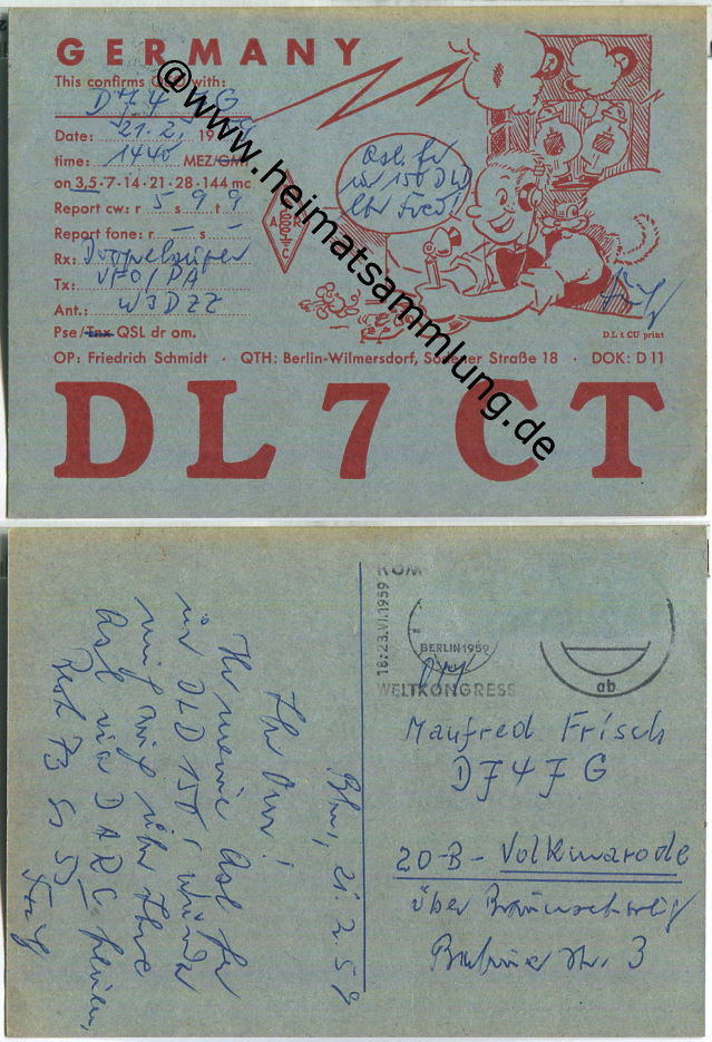 QSL - QTH - Funkkarte - DL7CT - Berlin-Wilmersdorf - gel. 1959 (G56687y) |