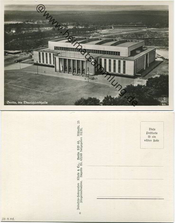 Berlin 30er Jahre - Deutschlandhalle - Luftaufnahme - Foto-Ansichtskarte - Verlag Klinke & Co. Berlin (E40100y) |