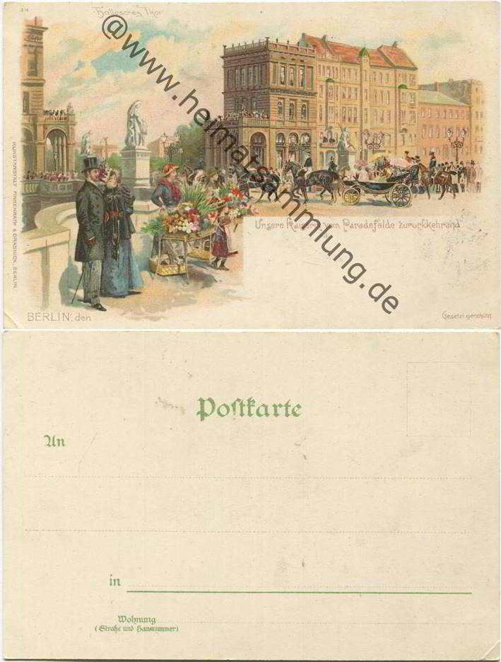 Berlin-Kreuzberg - Hallesches Thor - Unsere Kaiserin vom Paradefelde zurückkehrend ca. 1900 - Kunstanstalt Finkenrath & Grasnick Berlin - kleiner Eckknick unten links (E13611y) |