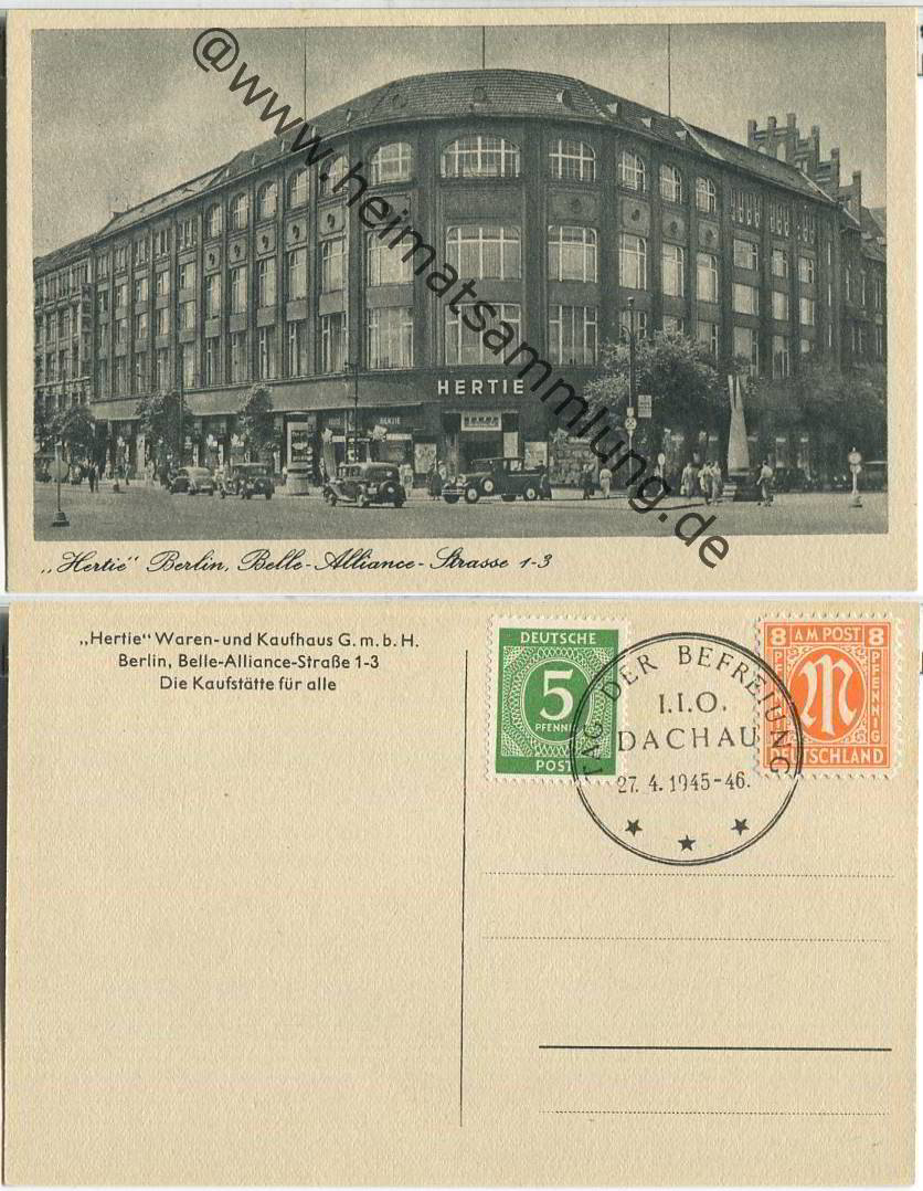 Berlin - Kaufhaus - Belle Alliance Strasse 1-3 - Sonderstempel 1946 Dachau - dünner Karton (E36484y) |