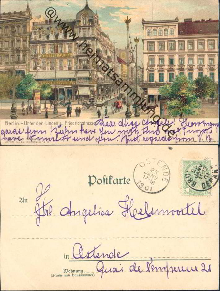 Berlin - Friedrichstrasse - Ecke Unter den Linden - Pferdebahn - Feldpost - Gebrauchsspuren (G24676y) |