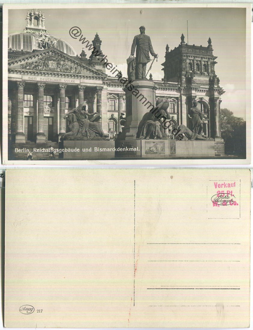 Berlin - Reichstaggebäude und Bismarckdenkmal - Foto-Ansichtskarte - Verlag Amag (E86375y) |