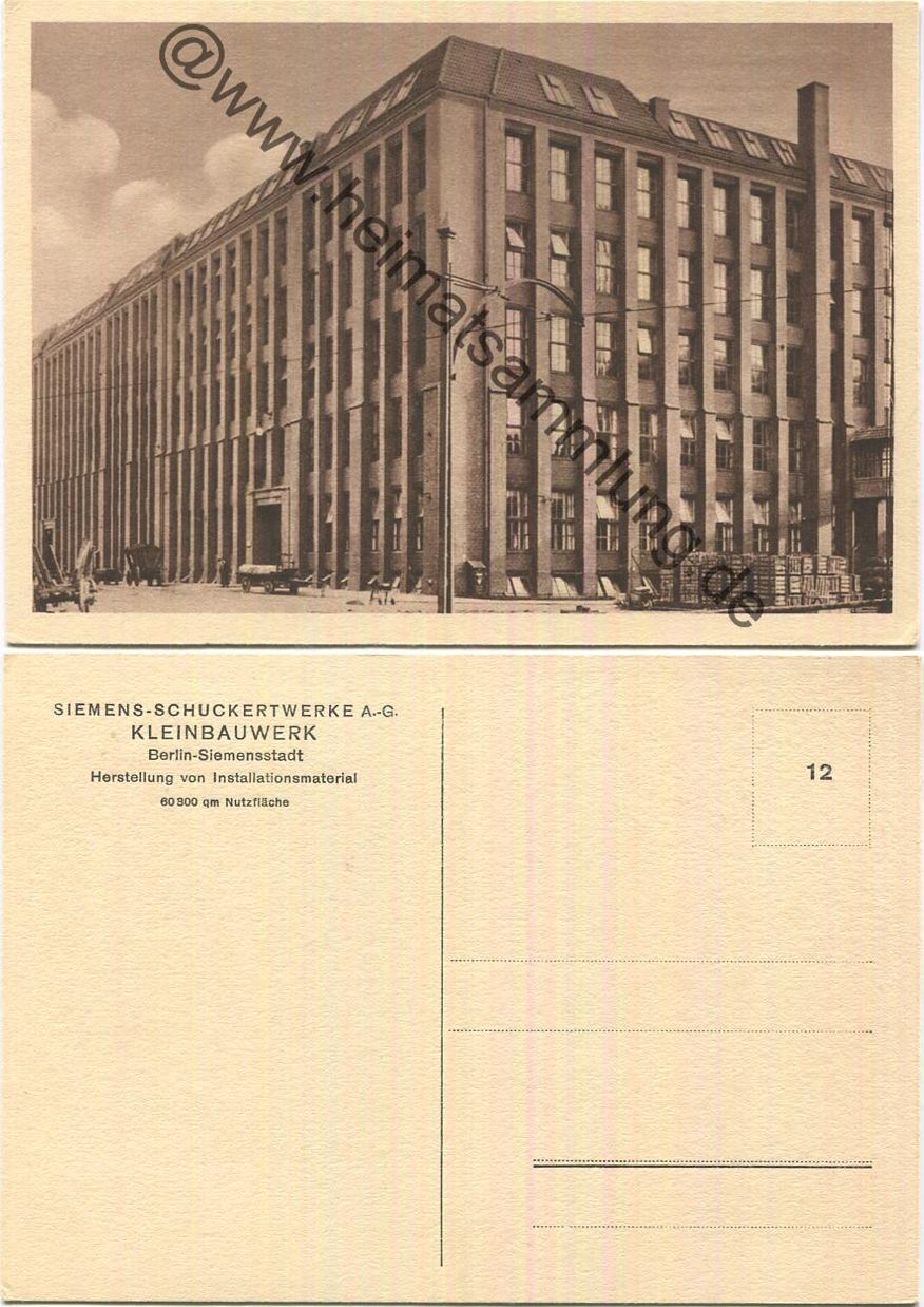 Berlin-Siemensstadt - Siemens-Schuckert-Werke - Kleinbauwerk - Verlag Voremberg Berlin 20er Jahre - rückseitig zwei Klebepunkte (G19109y) |