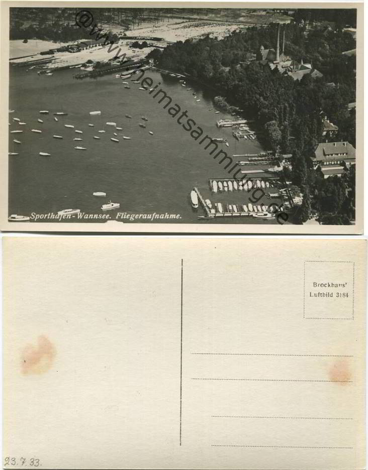 Berlin-Wannsee - Sporthafen - Foto-AK 1933 Fliegeraufnahme - Verlag Brockhaus - rückseitig Klebepunkte (E11913y) |