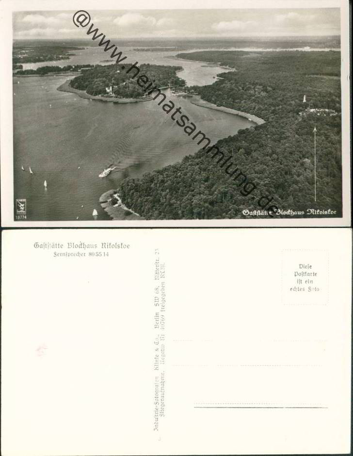 Berlin-Wannsee - Gaststätte Blockhaus Nikolskoe - Foto-Ansichtskarte - Fliegeraufnahme - Verlag Klinke & Co. Berlin (G4682y) |