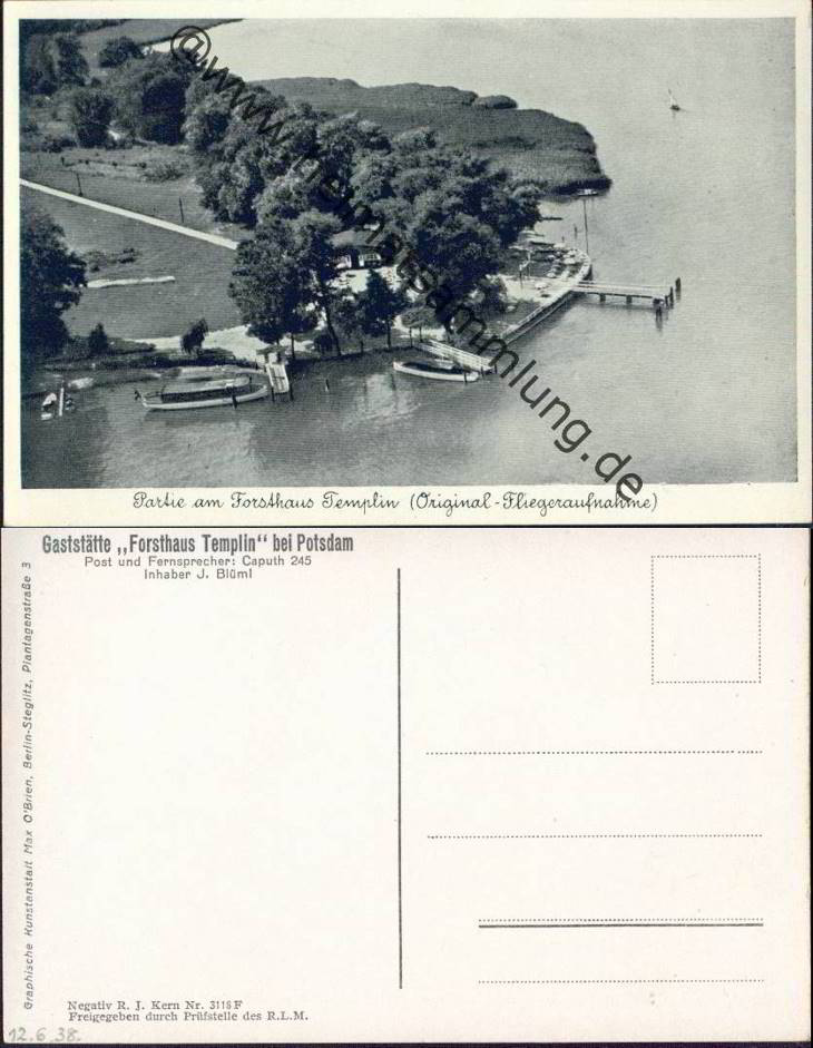 Caputh - Partie am Gaststätte Forsthaus Templin - Fliegeraufnahme - Foto-Ansichtskarte - Verlag Max O'Brien Berlin 30er Jahre (G8988y)