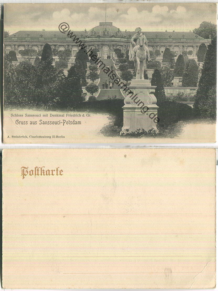 Gruss aus Sanssouci-Potsdam - Schloss Sanssouci mit Denkmal Friedrich des Grossen - Verlag A. Steinbrück Berlin (E86590y) |