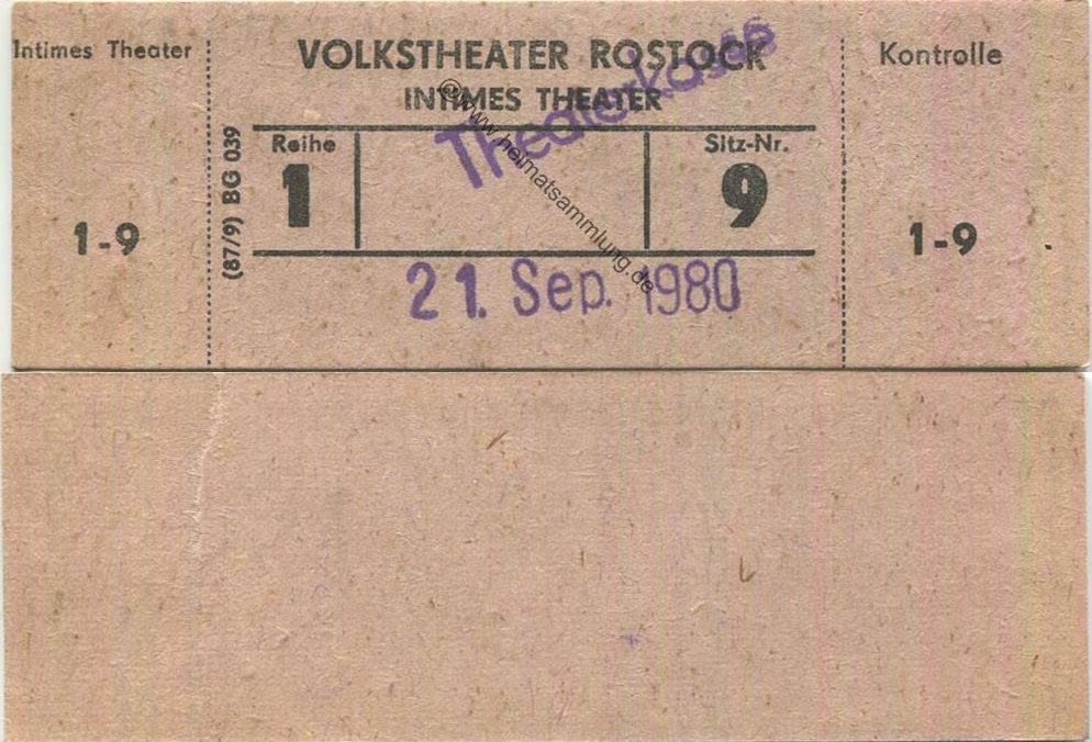 Volkstheater Rostock - Intimes Theater - Eintrittskarte 1980 (G62745y) |