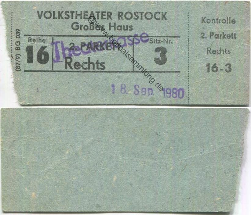 Volkstheater Rostock - Großes Haus - Eintrittskarte 1980 (G62746y) |
