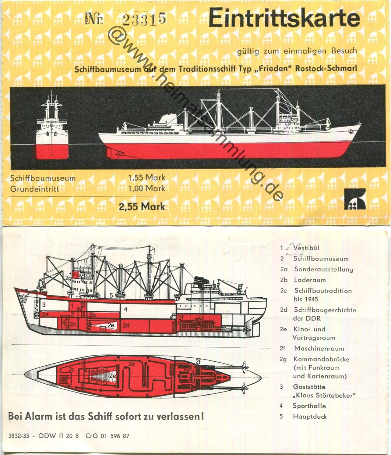 Rostock - Schiffbaumuseum auf dem Traditionsschiff Typ "Frieden" Rostock-Schmarl - Eintrittskarte 2,55 Mark (G62750y) |
