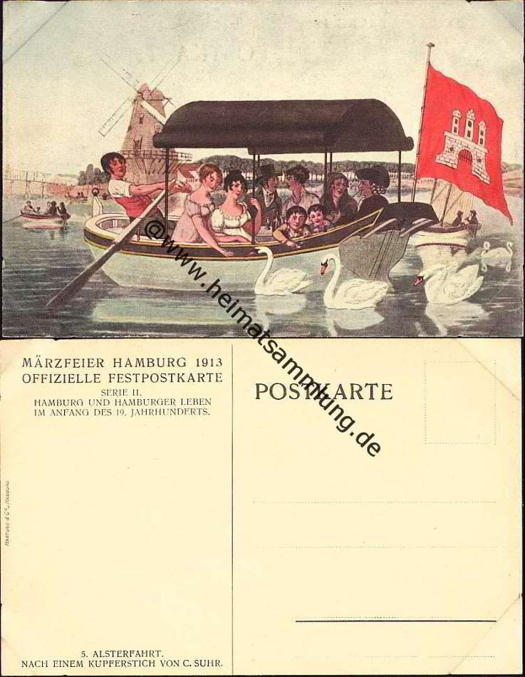 Hamburg - Festpostkarte - Märzfeier 1913 - Alsterfahrt - Serie 2 Hamburger Leben - Verlag Hartung & Co Hamburg - Albumspuren an den Ecken (E79996) |