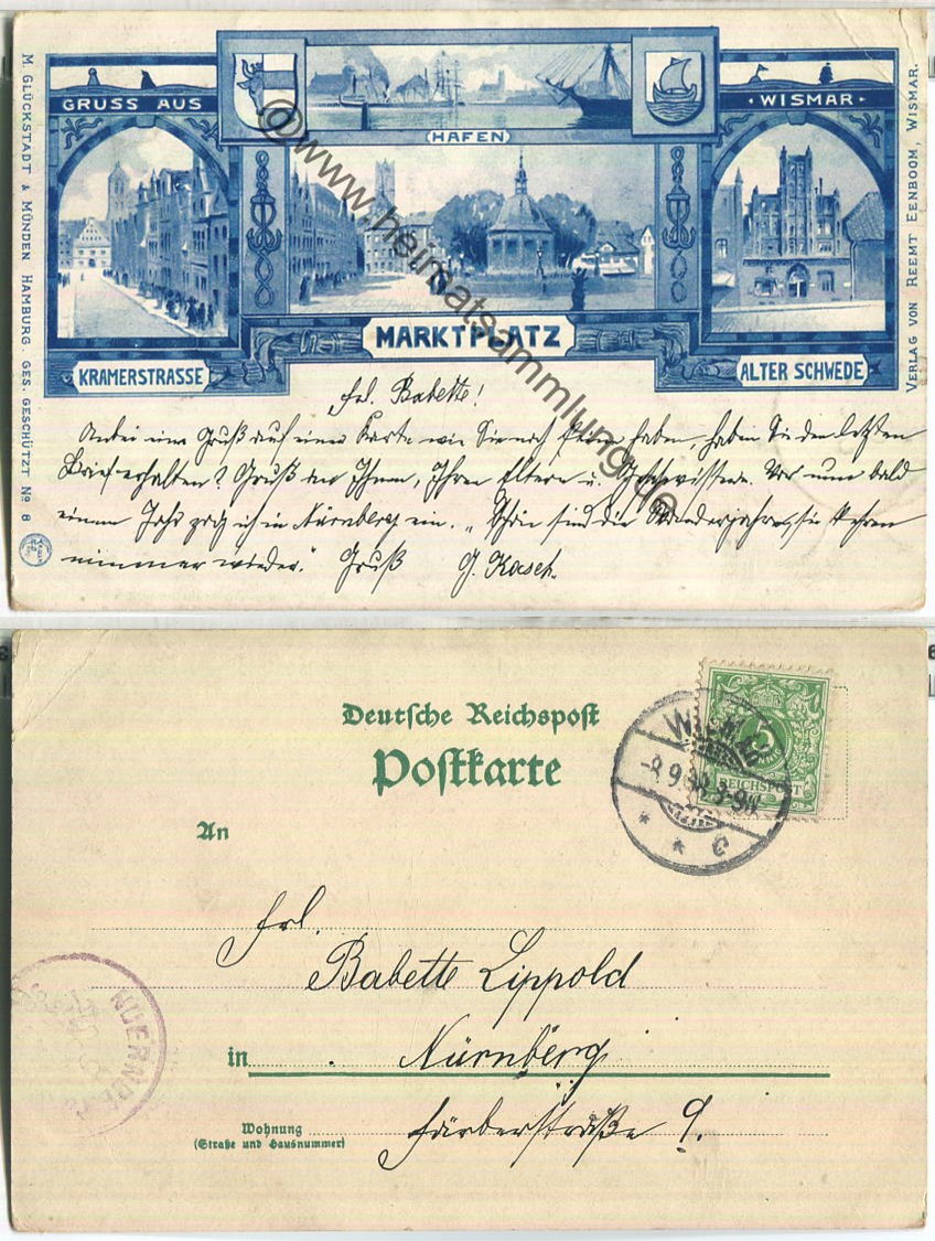 Wismar - Kramerstrasse - Hafen - Marktplatz - gel. 1898 - Verlag Reemt Eenboom Wismar - Ecken bestossen (G60177y) |