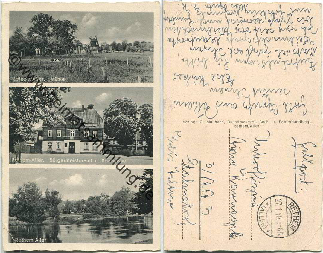 Rethem (Aller) - Mühle - Sparkasse und Bürgermeisteramt - Feldpost - Eckknick unten links (G26943y) |