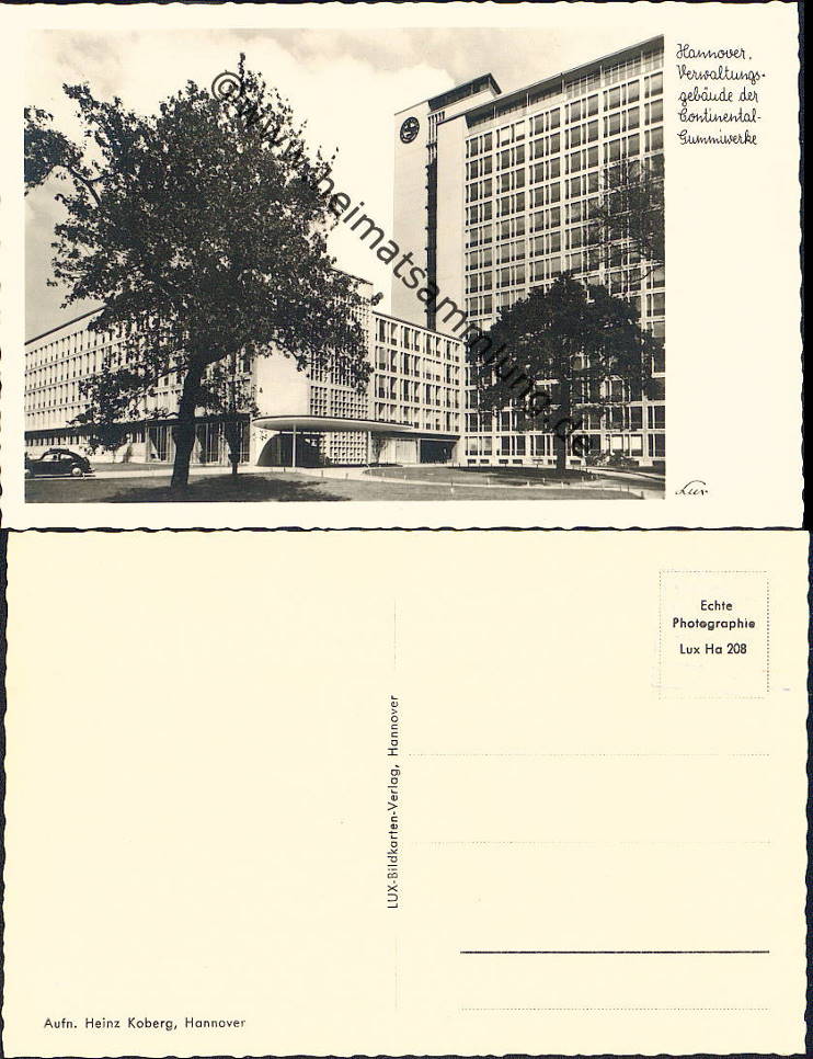 Hannover - Verwaltungsgebäude der Continental-Gummiwerke - Foto-AK - Verlag Lux Hannover (G18545y) |