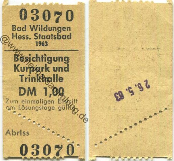 Bad Wildungen - Hessisches Staatsbad 1963 - Besichtigung Kurpark und Trinkhalle DM 1,00 (G62724y) |