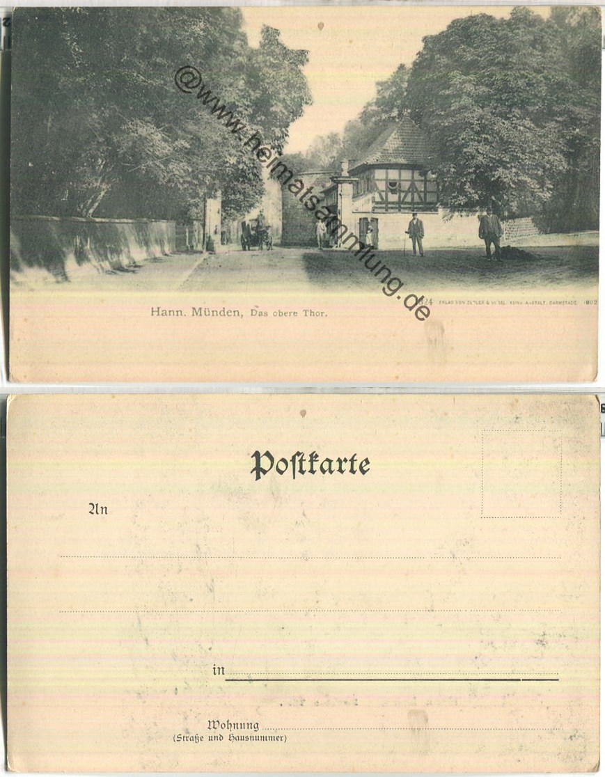 Hann. Münden - Das obere Thor - Verlag Zedler & Vogel Darmstadt 1902 - minimaler Eckknick oben rechts (E86325y) |