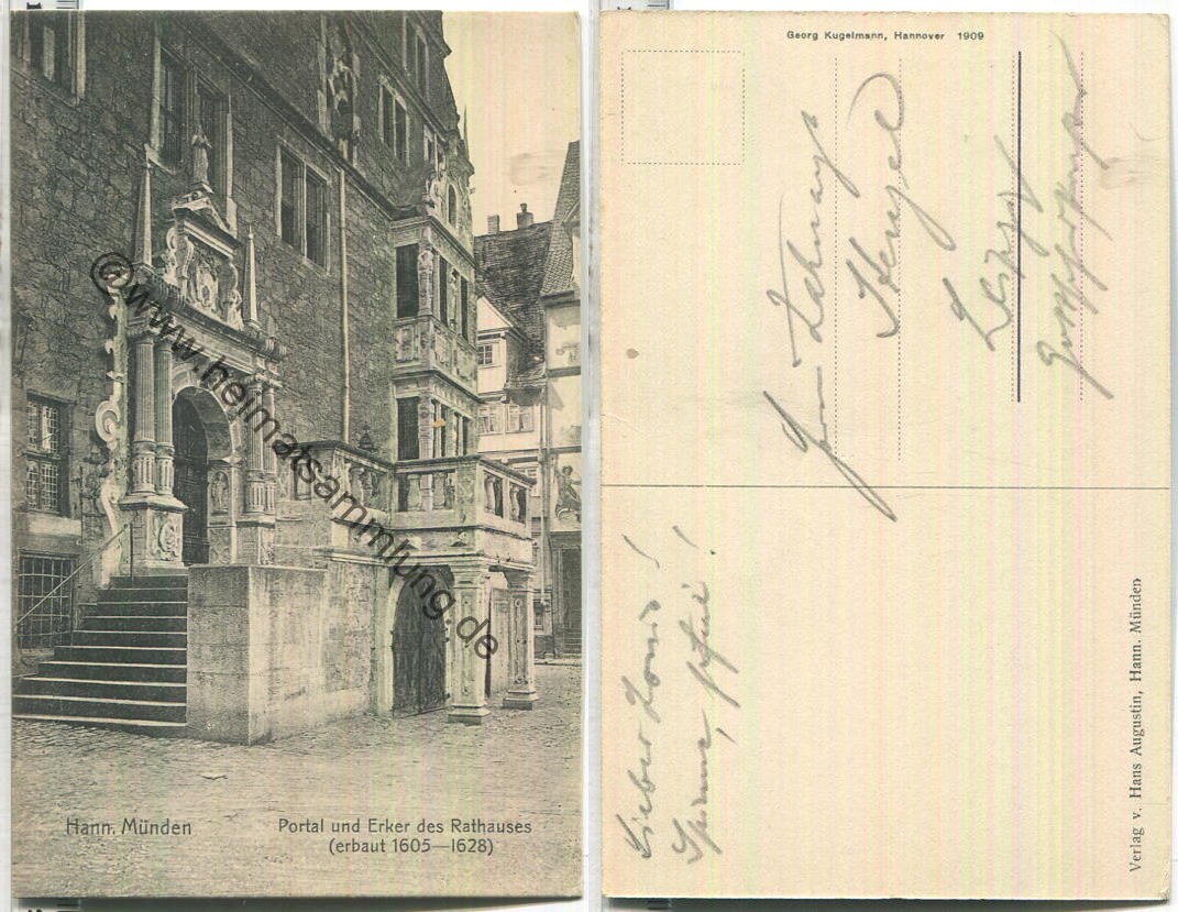 Hann.-Münden - Portal und Erker des Rathaus - Verlag Hans Augustin Hann. Münden 1909 (E86602y) |