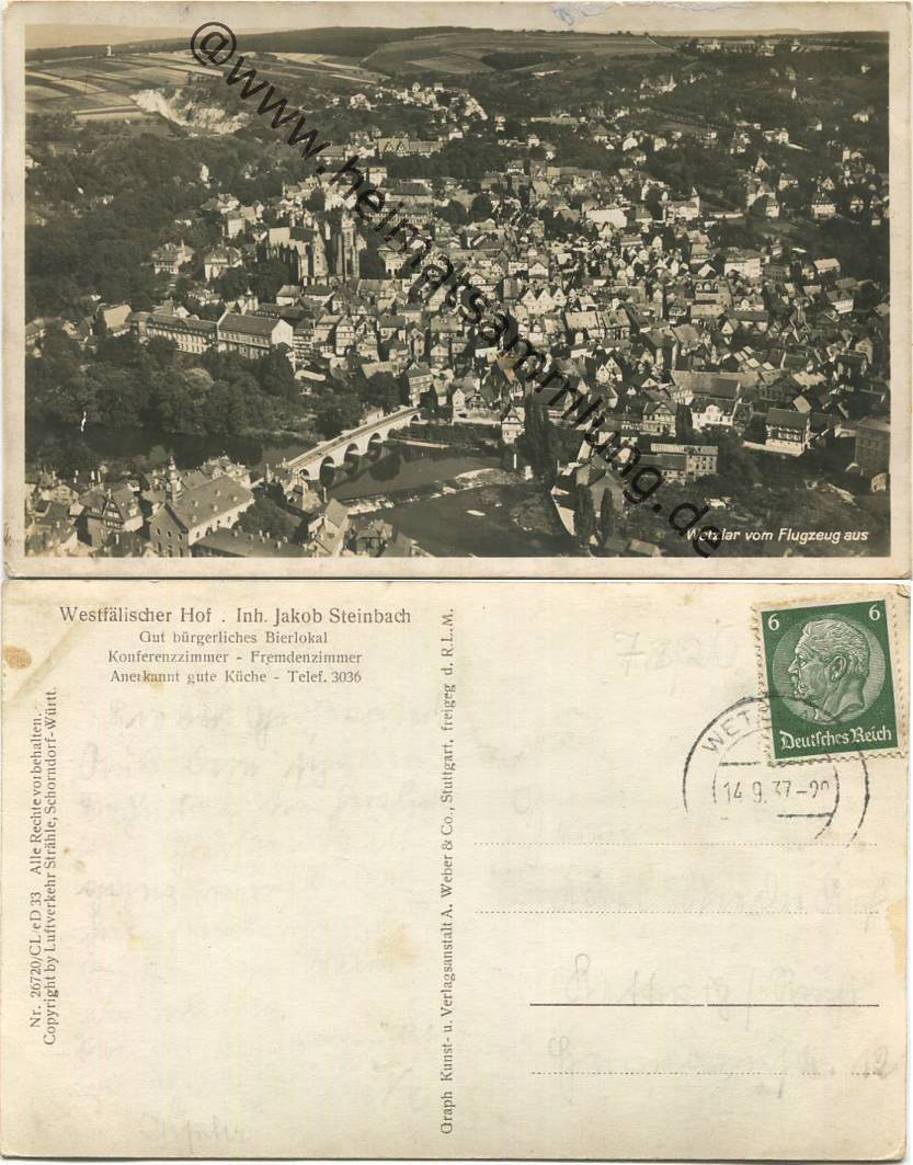Wetzlar - Fliegeraufnahme - Foto-AK - Verlag A. Weber & Co. Stuttgart - Gebrauchsspuren (E20130y) |