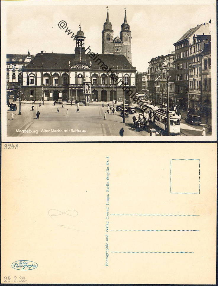 Magdeburg - Alter Markt mit Rathaus - Strassenbahn - Foto-AK ca. 1930 - Verlag Conrad Junga Berlin (G18425y) |