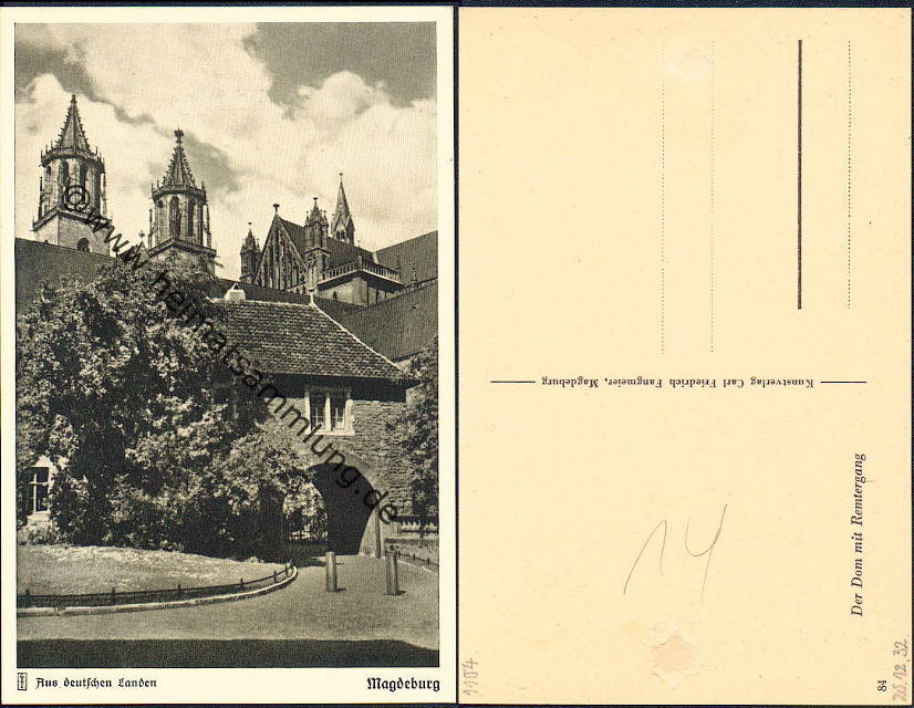 Magdeburg - Dom mit Remtergang - Verlag Carl Friedrich Fangmeier Magdeburg ca. 1930 - rückseitig zwei Klebestellen (G18458y) |