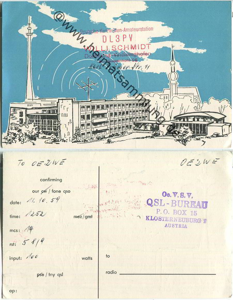 QSL - QTH - Funkkarte - DL3PV - Dortmund - 1959 (G34980y) |