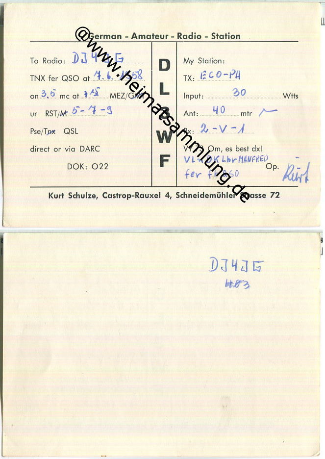 QSL - Funkkarte - DJ2KY - Castrop-Rauxel - 1958 (E25753y) |