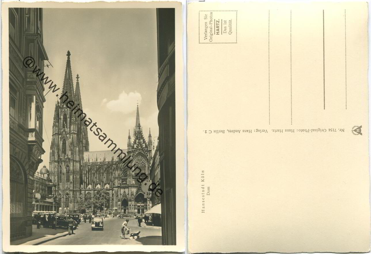 Der Kölner Dom - Foto-Ansichtskarte 30er Jahre - Verlag Hoursch & Bechstedt Köln - rückseitig Klebestellen (G17175y) |