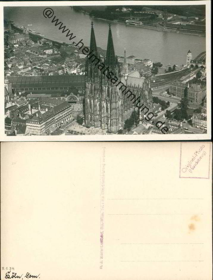 Köln - Dom - Foto-AK Kern-Luftbild Handabzug 30er Jahre (E6829y) |