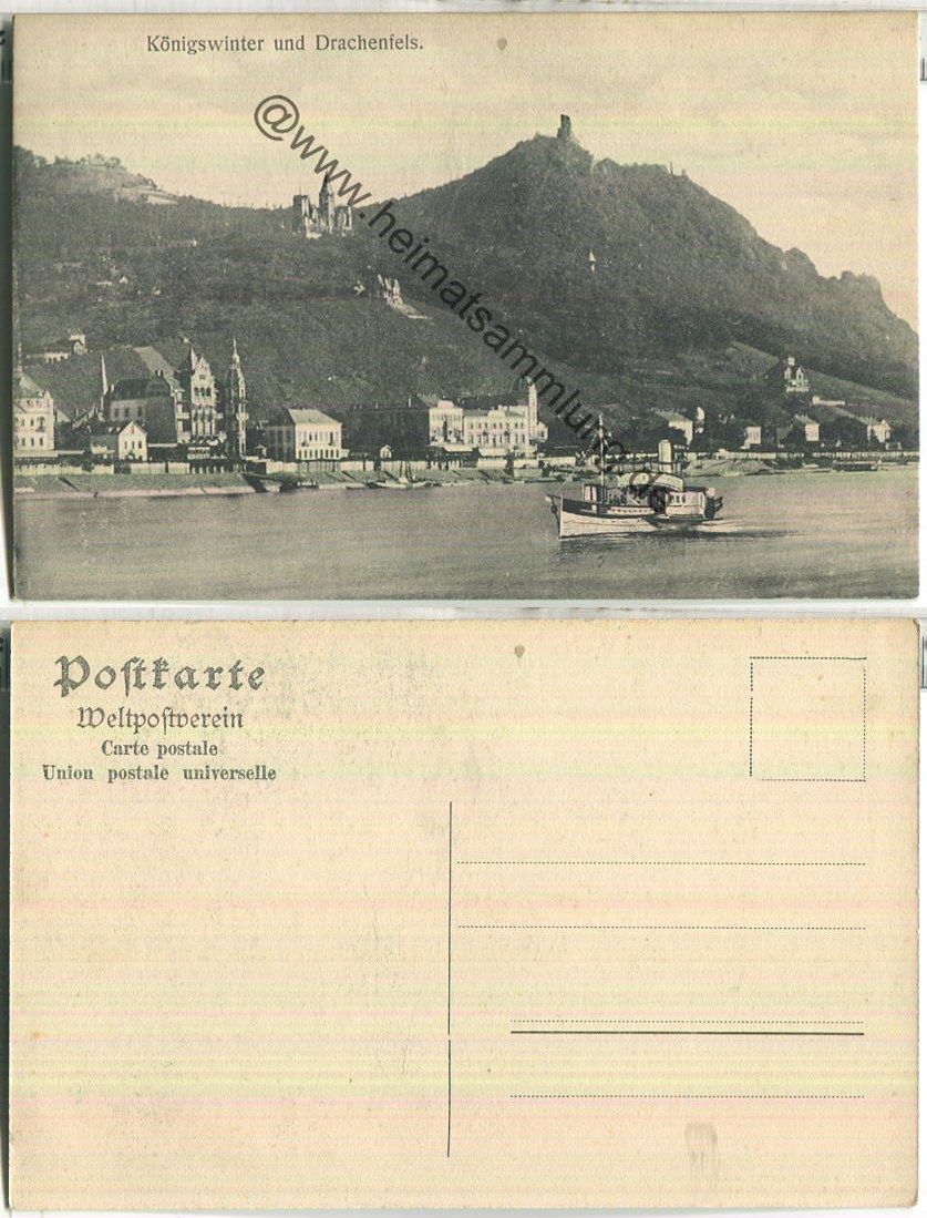 Blick über den Rhein auf Königswinter und den Drachenfels - Verlag Hans Andres Hamburg - Gebrauchsspuren (E68590) |