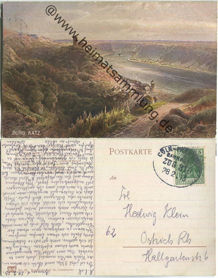 Burg Katz - St. Goarshausen - Künstler-Ansichtskarte - Verlag Hoursch & Bechstedt Köln (G48505y) |