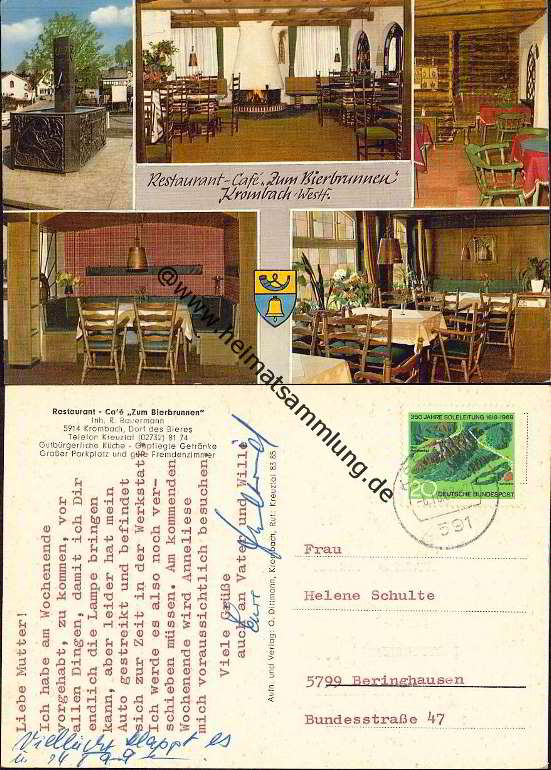 Kreuztal - Krombach - Restaurant Zum Bierbrunnen - Inhaber R. Bauermann - Verlag O. Dittmann Krombach (E84084) |
