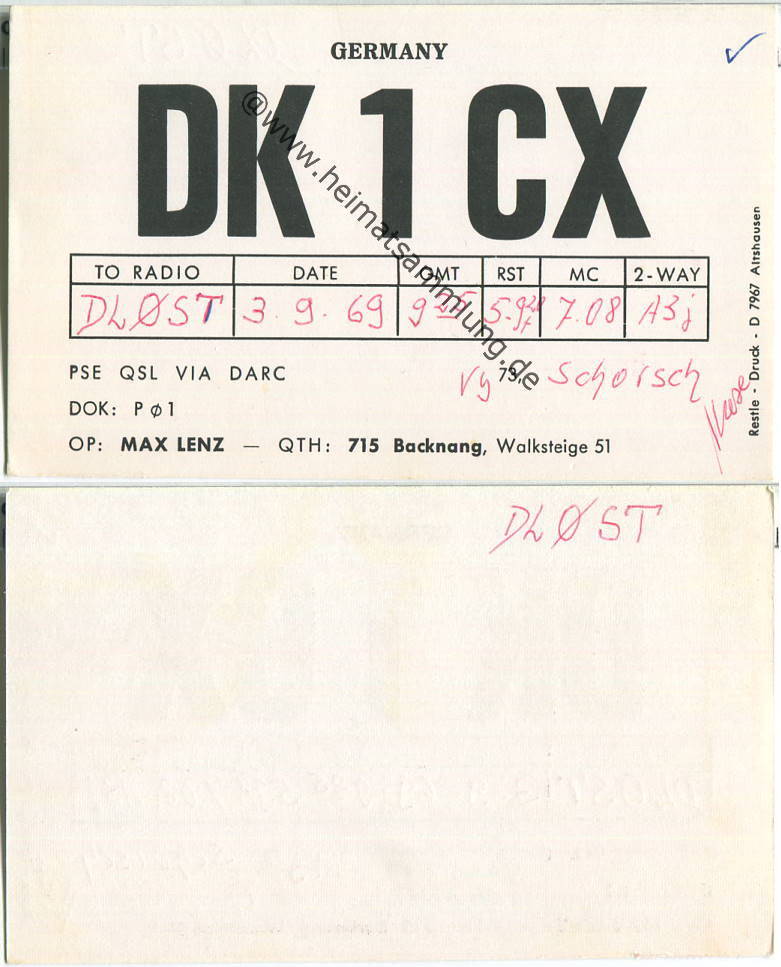 QSL - QTH - Funkkarte - DK1CX - Backnang - 1969 (G31070y) |