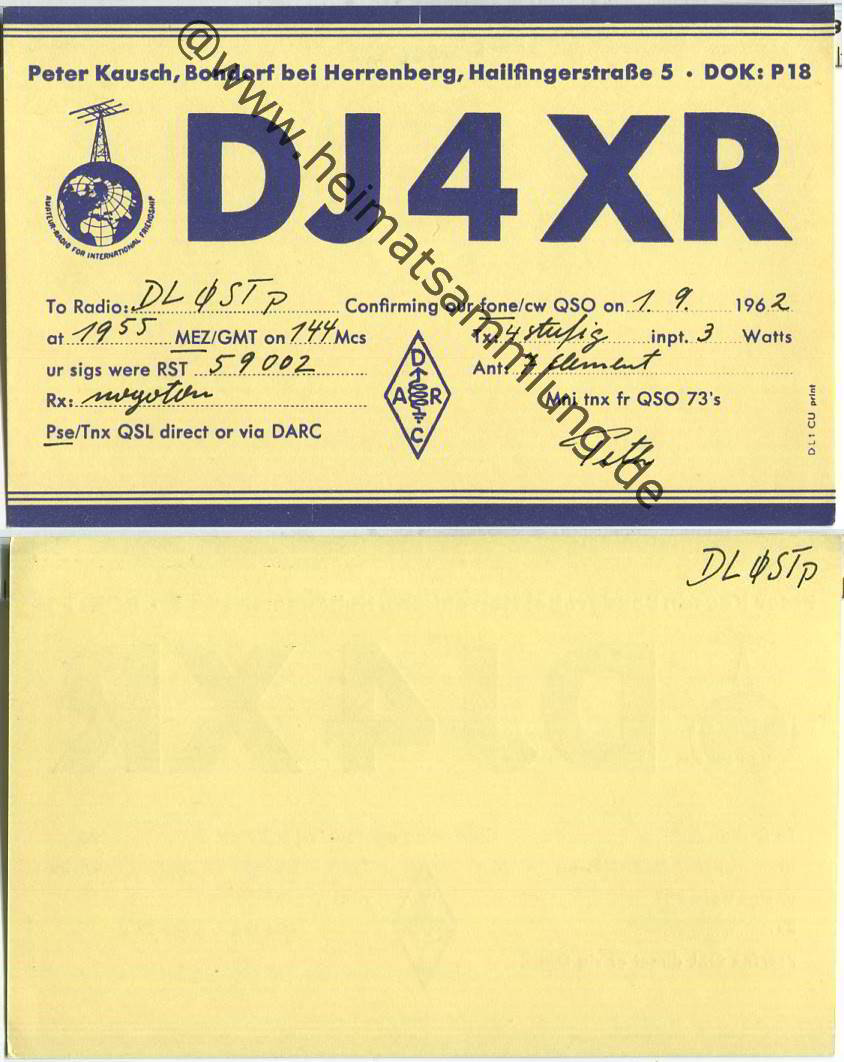 QSL - QTH - Funkkarte - DJ4XR - Bondorf bei Herrenberg - 1962 (G31994y) |
