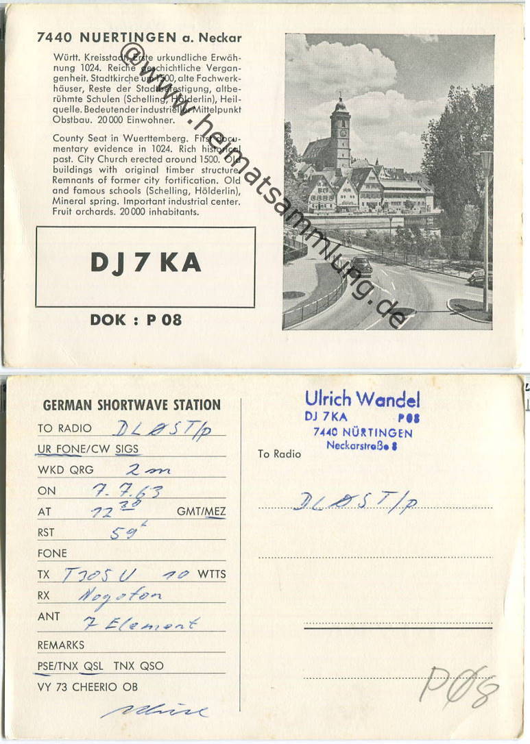 QSL - QTH - Funkkarte - DJ7KA - Nürtingen - 1963 - Ecken teilweise bestossen (G31334y) |