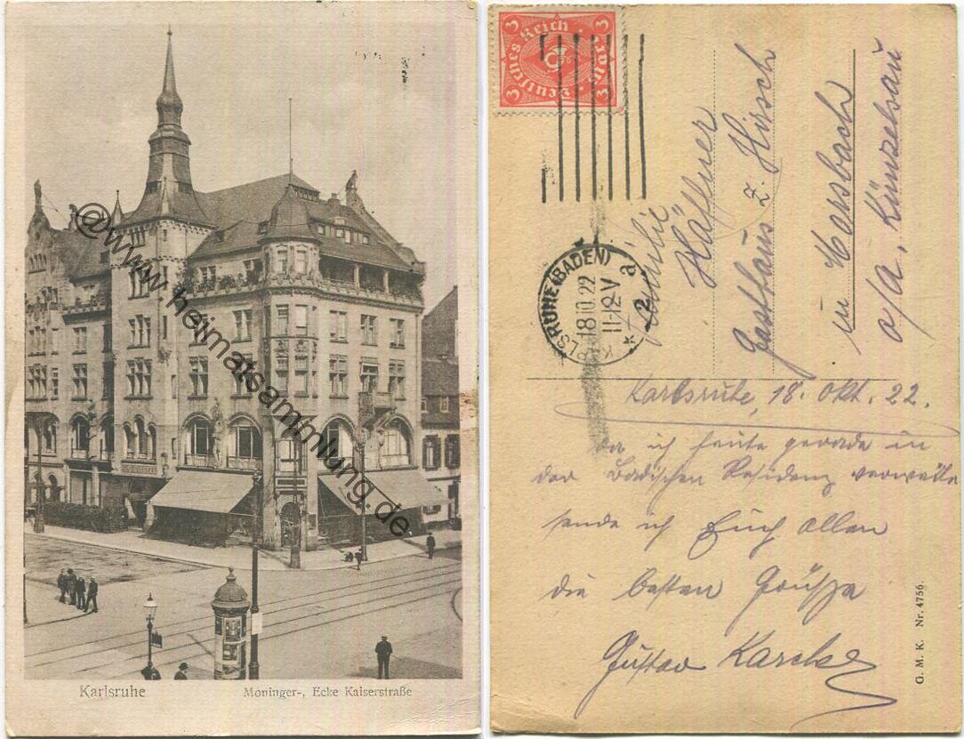Karlsruhe - Moninger- Ecke Kaiserstrasse - Gebrauchsspuren (E34882y) |