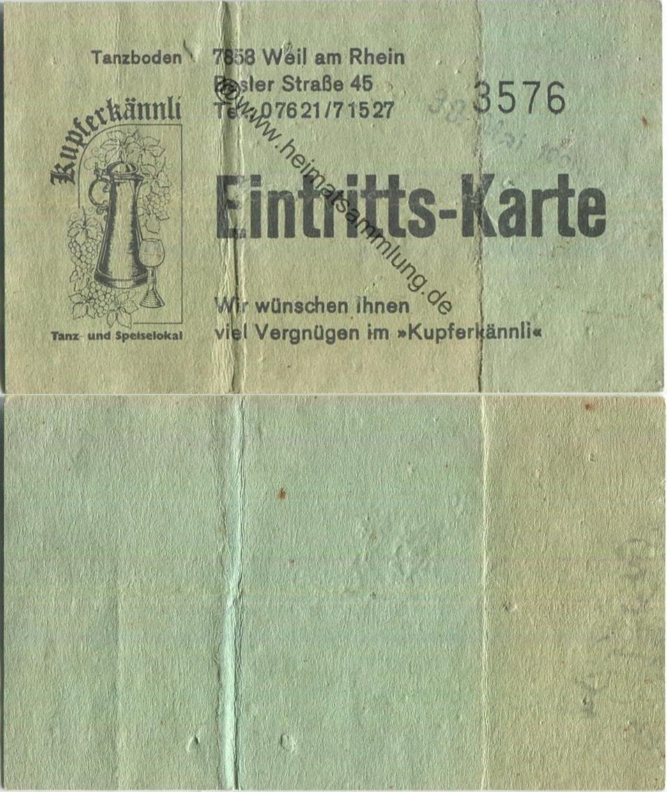 Weil am Rhein - Tanzboden Kupferkännli - Eintritts-Karte (G62722y) |
