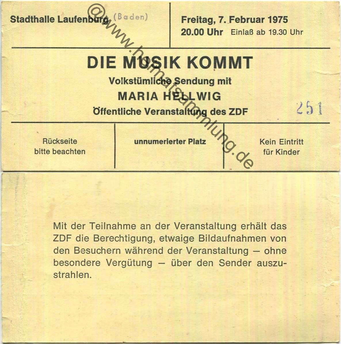 Stadthalle Laufenburg (Baden) - Die Musik Kommt - Maria Hellwig 1975 (G62726y) |