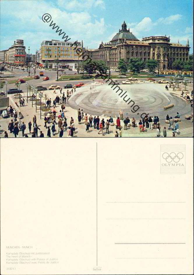 München - Karlsplatz - Hotel Königshof und Justitzpalast - Verlag Manfred Huckauf München - leichte Gebrauchsspuren (E77106) |