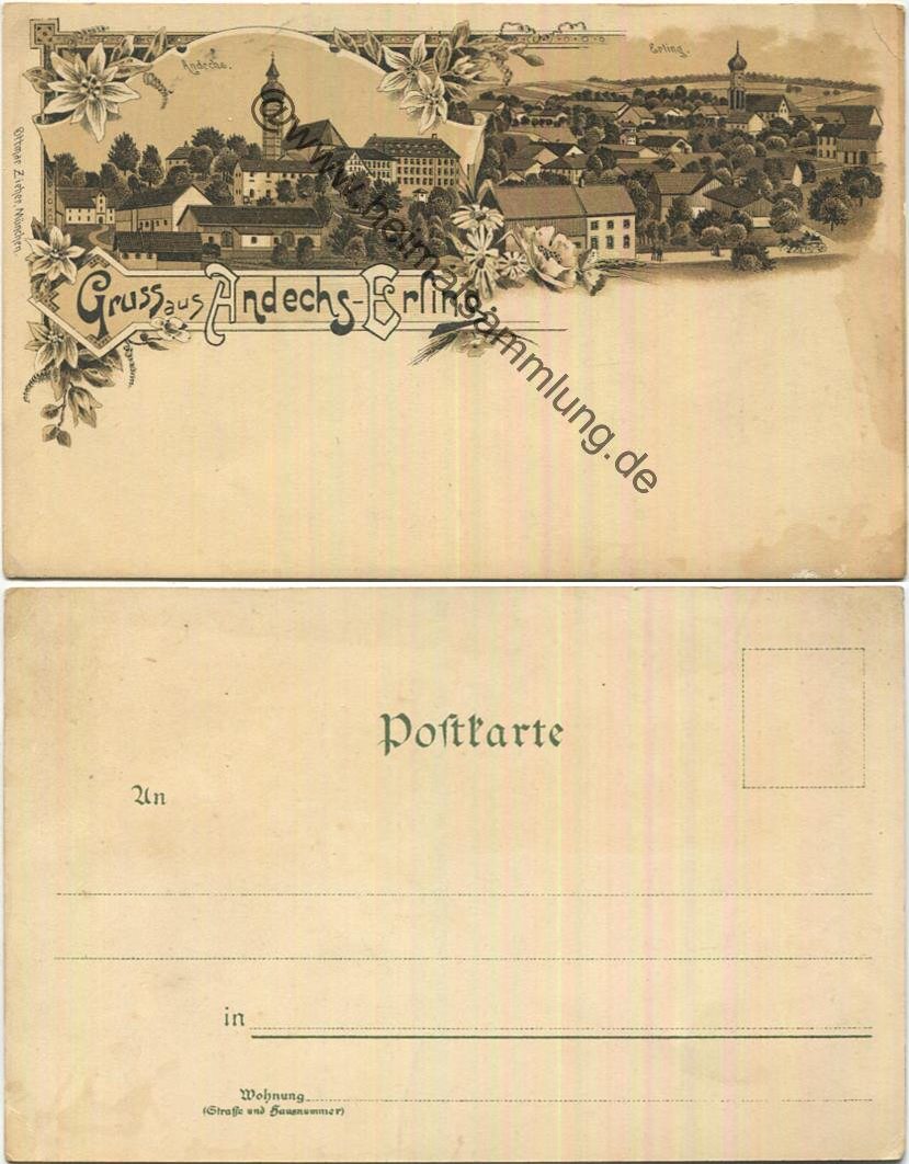 Andechs - Erling - Lithographie - Verlag Ottmar Zieher München - Gebrauchsspuren (E34969y) |