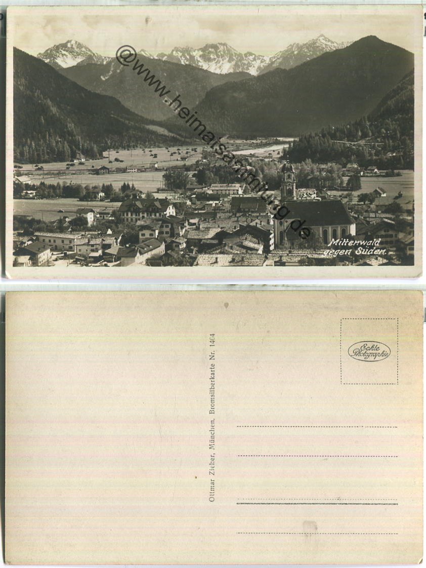 Mittenwald gegen Süden - Foto-Ansichtskarte - Verlag Ottmar Zieher München (E86126y) |