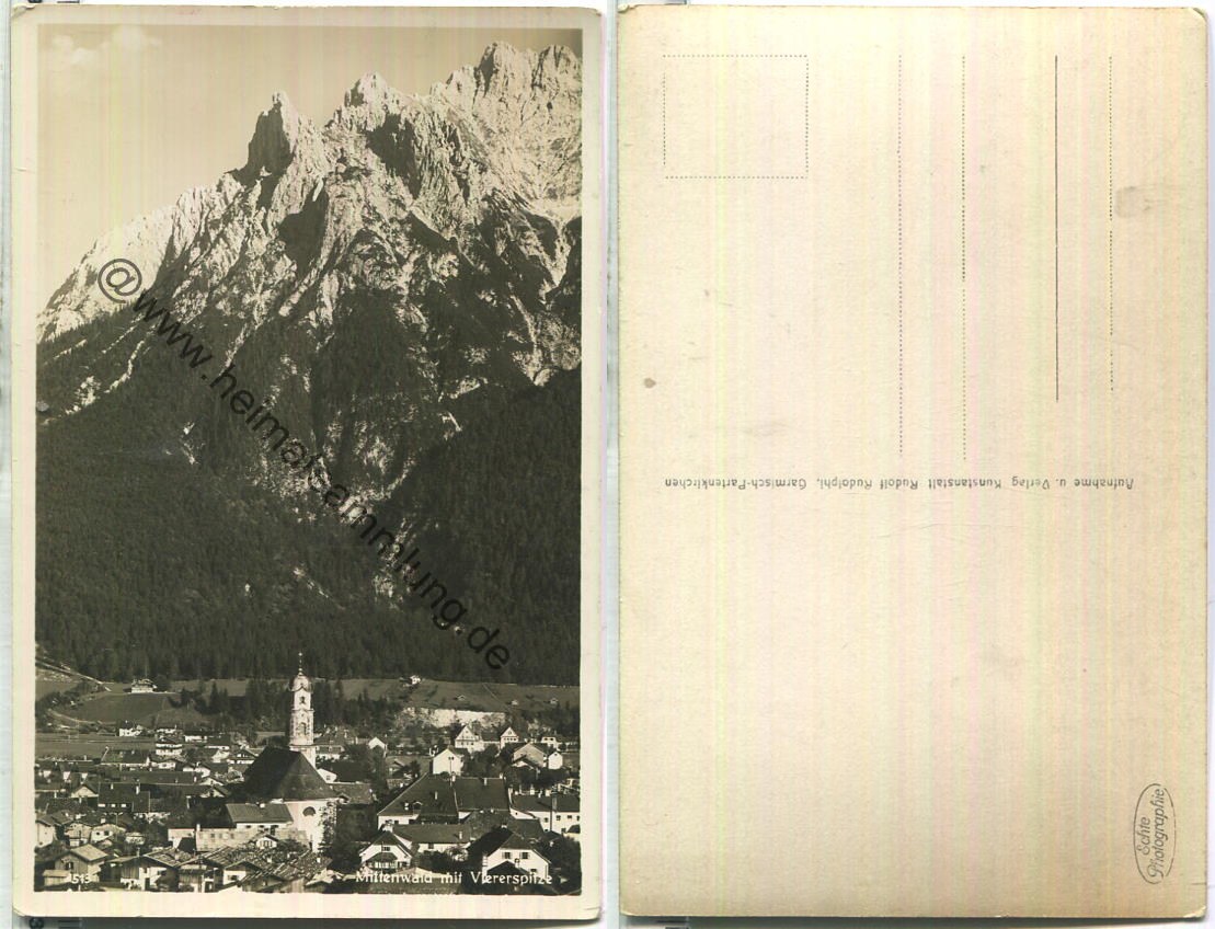 Mittenwald mit Viererspitze - Foto-Ansichtskarte - Verlag Rudolf Rudolphi Garmisch-Partenkirchen (E86127y) |
