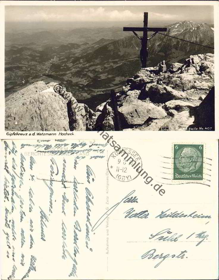Gipfelkreuz auf dem Watzmann - Hocheck - Foto-Ansichtskarte - Verlag F. G. Zeitz Königssee (E90767y) |