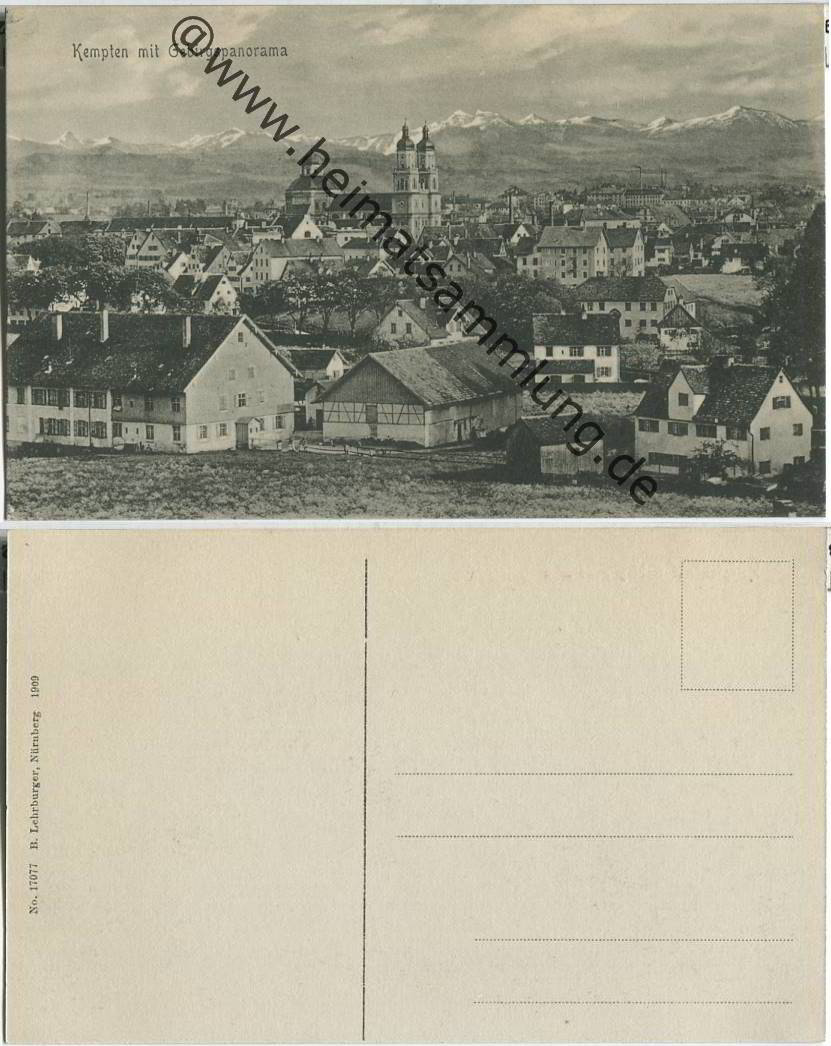 Kempten im Allgäu - Gesamtansicht mit Gebirgspanorama - Verlag B. Lehrburger Nürnberg um 1909 (G24474y) |