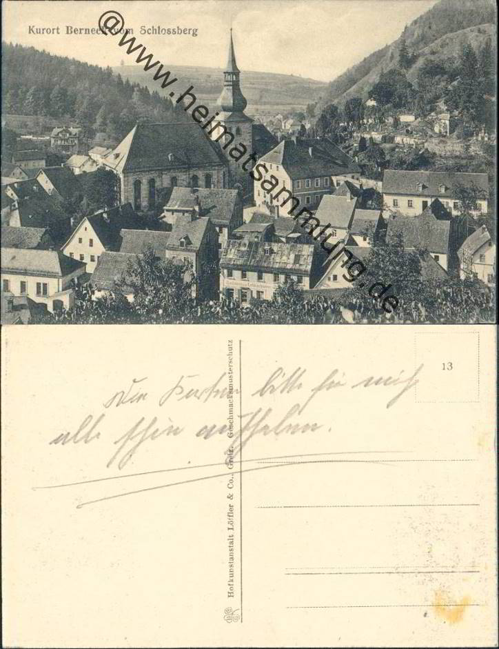 Berneck - Blick vom Schlossberg - Verlag Löffler & Co. Greiz - Rückseite beschrieben (E218y) |