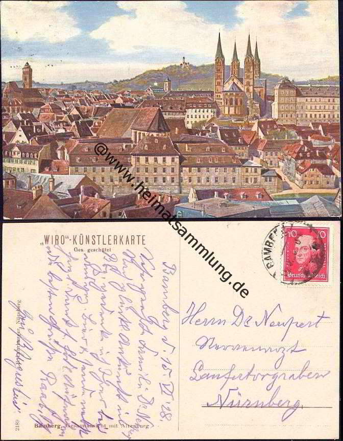 Bamberg - Gesamtansicht - Verlag WIRO Künstlerkarte - leichte Stempelspur (E81605) |